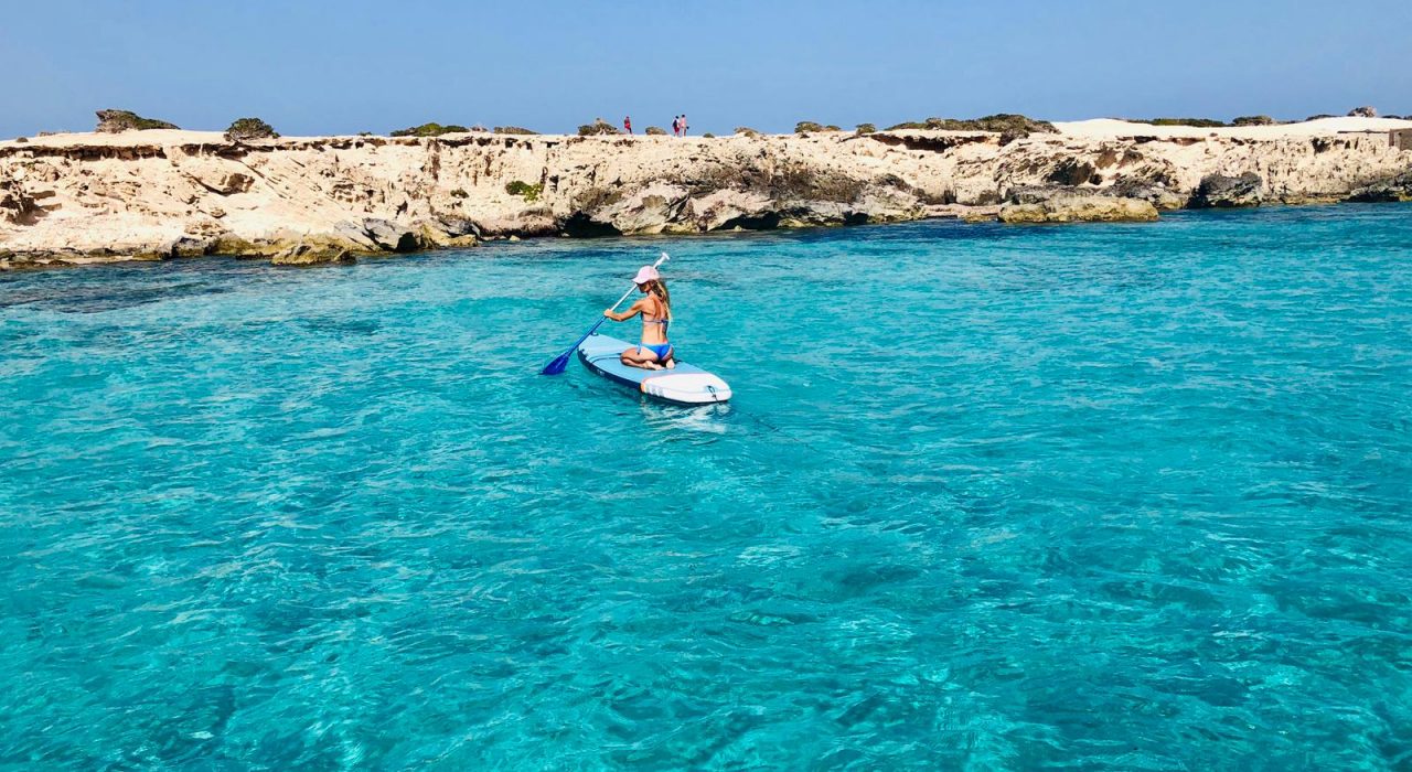 Everyday we explore the beautiful and paradiasiac island of Formentera. Come on board of Mas Que Nada to enjoy white beaches, cristal clear water, pristine caves, snorkeling on posidonia gardens and have fun with the paddle board!